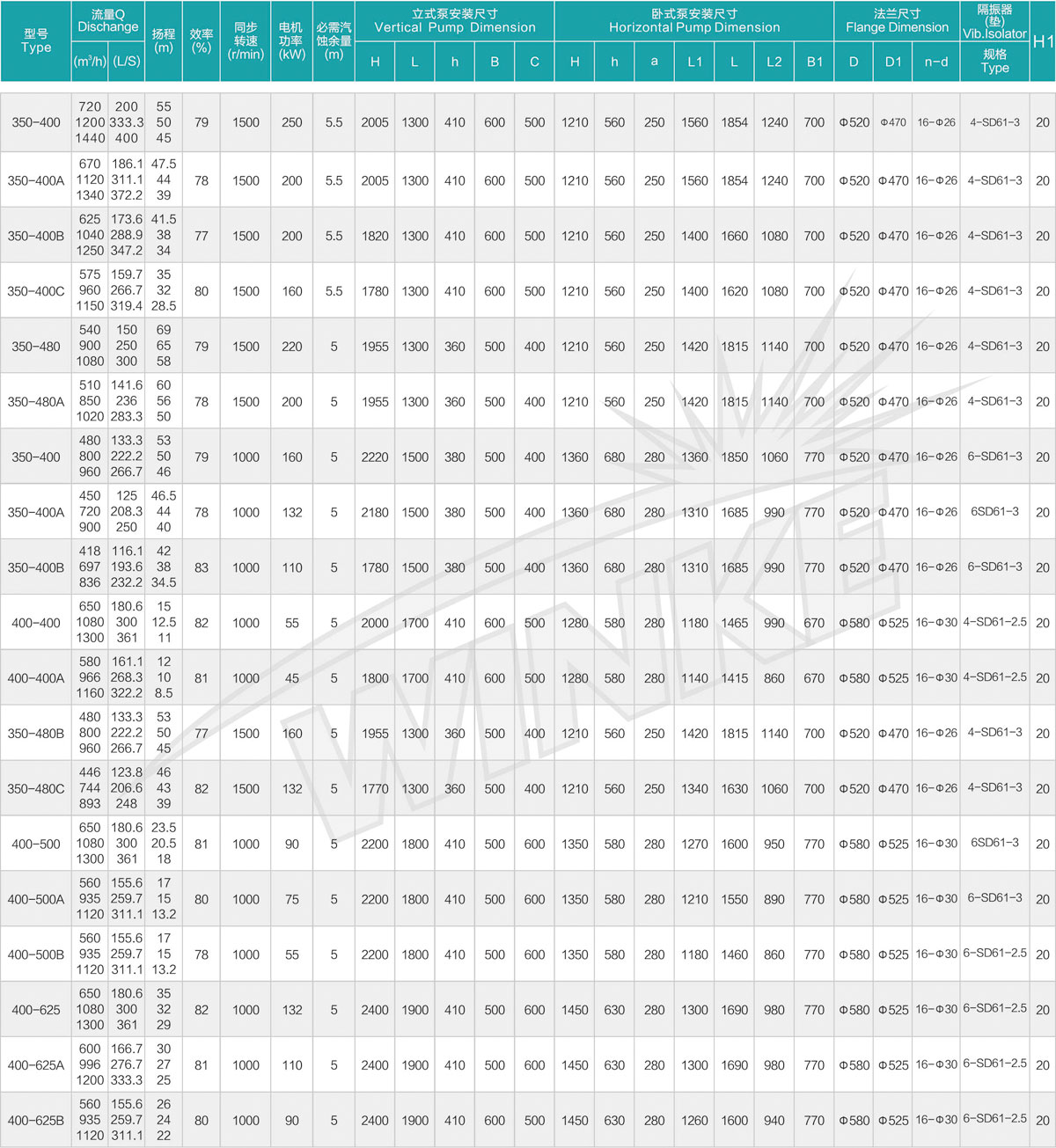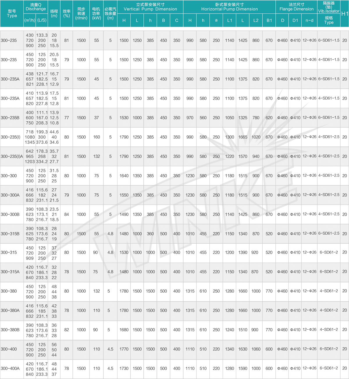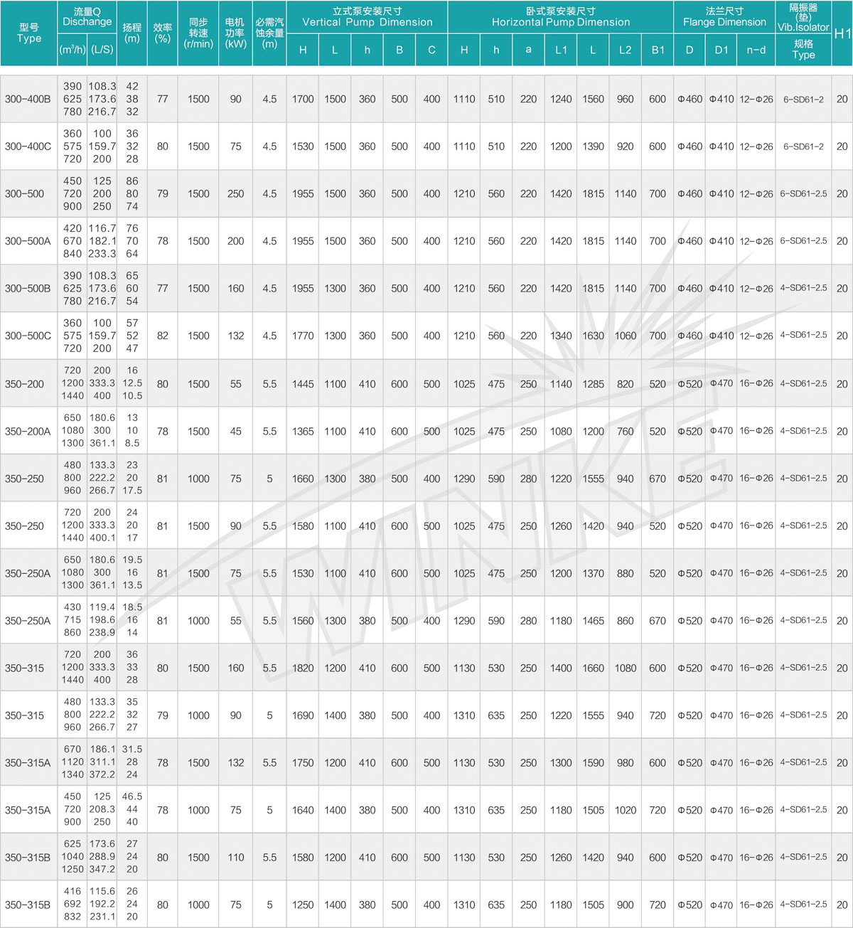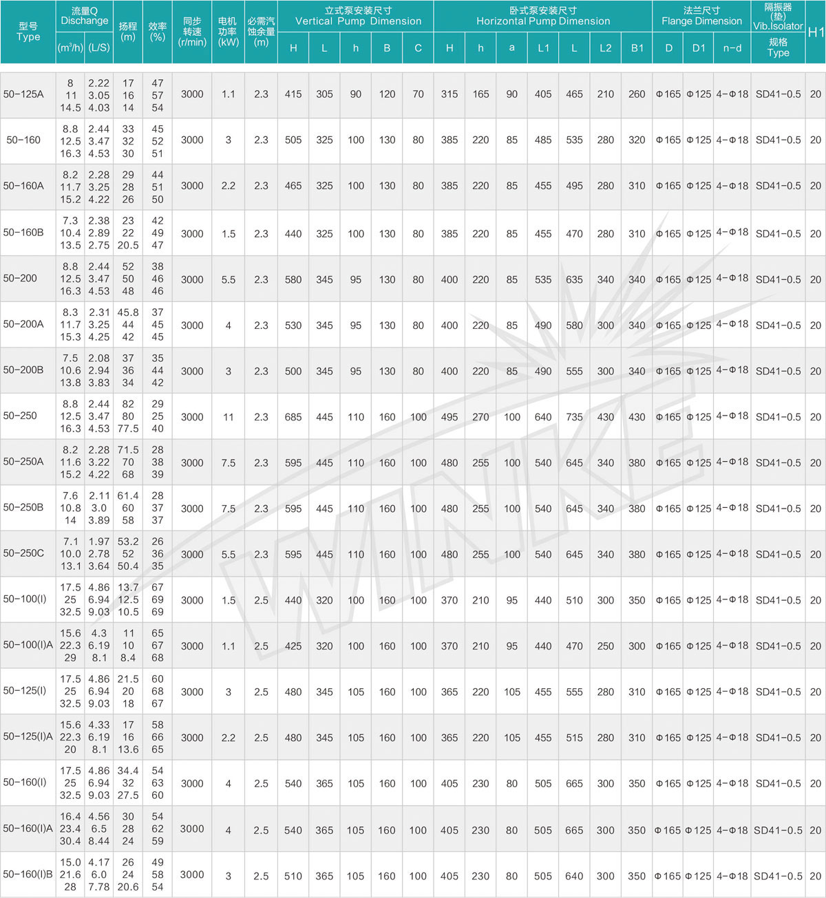 1、泵系统最高压力为1.6MPa.即泵吸入口压力+泵扬程≤1.6MPa。(订货时请注明系统工作压力、泵系统工作压力大于1.6MPa时,应在订货时另行提出。以便在制造时泵的过流部分和联接部分采用铸铁材料。)